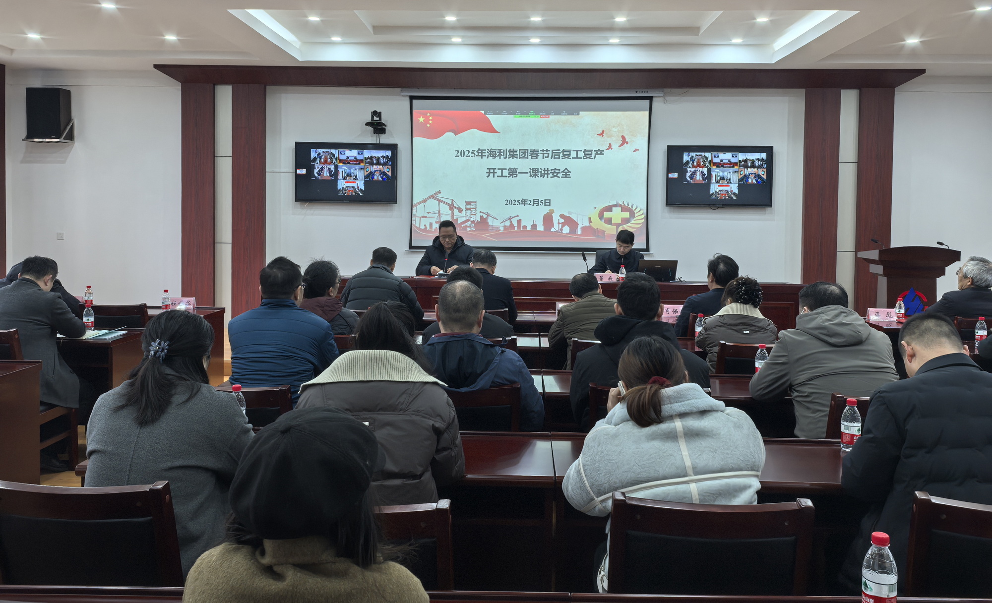 集團黨委班子成員、集團和股份公司高管、總部中層管理人員、安全員,院內(nèi)各子企業(yè)班子成員、各承租單位負責人共70余人在主會場參加會議,已開工單位在各自分會場視頻參加會議。