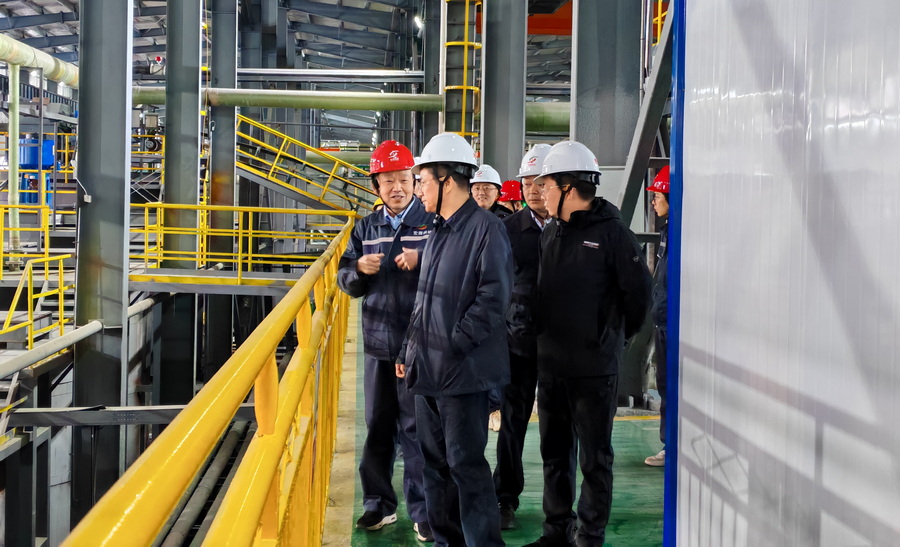 楊洪峰一行實(shí)地走訪了宏源公司生產(chǎn)調(diào)度控制室、生產(chǎn)車間及項(xiàng)目現(xiàn)場(chǎng),詳細(xì)了解釩生產(chǎn)工藝、產(chǎn)品精深加工延伸、產(chǎn)業(yè)鏈發(fā)展規(guī)劃、環(huán)保設(shè)施運(yùn)行及安全生產(chǎn)管理等情況。在聽取宏源公司負(fù)責(zé)人關(guān)于釩產(chǎn)業(yè)鏈項(xiàng)目的發(fā)展規(guī)劃及有關(guān)問題的匯報(bào)后,楊洪峰指出,海利集團(tuán)作為湖南省的釩產(chǎn)業(yè)鏈鏈主企業(yè),在推進(jìn)智能化、數(shù)字化提質(zhì)升級(jí)及資源綜合利用方面成績(jī)顯著,下一步應(yīng)加速推進(jìn)下游高科技產(chǎn)品研發(fā)進(jìn)程,重點(diǎn)聚焦于廢渣循環(huán)利用領(lǐng)域,通過技術(shù)創(chuàng)新與產(chǎn)業(yè)協(xié)同實(shí)現(xiàn)資源循環(huán)利用,提高企業(yè)經(jīng)濟(jì)效益,推動(dòng)環(huán)境保護(hù)可持續(xù)發(fā)展。他強(qiáng)調(diào),州縣各級(jí)各部門要進(jìn)一步優(yōu)化營(yíng)商環(huán)境,落實(shí)惠企政策,為企業(yè)發(fā)展創(chuàng)造良好條件。他鼓勵(lì)宏源公司搶抓新能源產(chǎn)業(yè)發(fā)展機(jī)遇,加強(qiáng)與科研機(jī)構(gòu)合作,推動(dòng)全釩液流電池等前沿技術(shù)研發(fā)應(yīng)用,努力打造全省釩產(chǎn)業(yè)標(biāo)桿企業(yè),為湘西州高質(zhì)量發(fā)展注入新動(dòng)能。