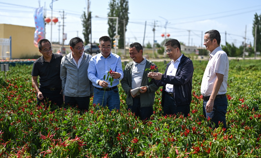 峰會(huì)現(xiàn)場(chǎng),興蔬種業(yè)公司展示了豐碩的產(chǎn)業(yè)成果,在焉耆縣五號(hào)渠鄉(xiāng)頭號(hào)渠村,萬(wàn)畝戈壁辣椒種植基地集中示范成果斐然,鄒學(xué)校團(tuán)隊(duì)新培育的色素椒新品種“興蔬紅186”長(zhǎng)勢(shì)旺盛。