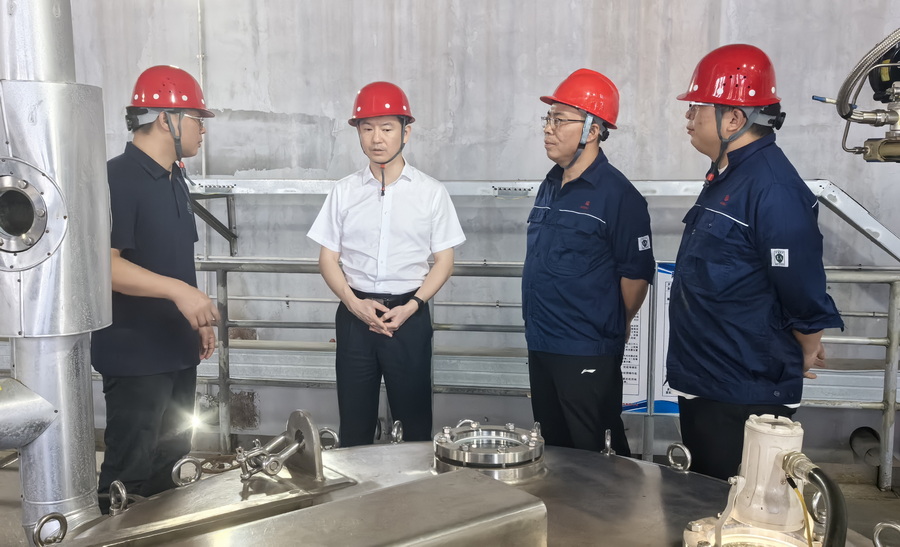 調(diào)研期間,董巍一行直奔銀海公司生產(chǎn)一線,深入了解生產(chǎn)運營全流程,為一線工作精準(zhǔn)“把脈問診”。在生產(chǎn)車間,他細(xì)致核查設(shè)備運行狀態(tài)、工藝流程銜接細(xì)節(jié)及現(xiàn)場作業(yè)規(guī)范執(zhí)行情況,與現(xiàn)場操作人員深入交流,重點詢問生產(chǎn)效率提升舉措、設(shè)備日常維護(hù)機(jī)制及安全管理落實細(xì)節(jié),全面掌握一線生產(chǎn)實況。