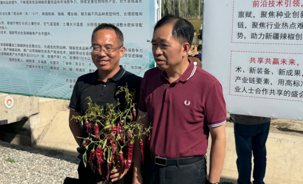 天山突兀拔地起,雪光燭天天尺咫。2024年9月19日,帶著豐收的喜悅,湖南興蔬種業(yè)辣椒品種新疆現(xiàn)場(chǎng)觀摩會(huì)隆重召開。本次觀摩會(huì)由湖南興蔬種業(yè)有限公司與湖南省蔬菜研究所聯(lián)合主辦。中國(guó)工程院院士、國(guó)家特色蔬菜產(chǎn)業(yè)技術(shù)體系首席科學(xué)家、湖南農(nóng)業(yè)大學(xué)校長(zhǎng)鄒學(xué)校,湖南省蔬菜產(chǎn)業(yè)技術(shù)體系首席科學(xué)家戴雄澤,國(guó)家特色蔬菜產(chǎn)業(yè)體系崗位科學(xué)家劉峰,新疆生產(chǎn)建設(shè)兵團(tuán)第二師22團(tuán)黨委書記、政委張?chǎng)?,湖南省蔬菜研究所所長(zhǎng)李雪峰,湖南興蔬種業(yè)有限公司董事長(zhǎng)鄒家華蒞臨現(xiàn)場(chǎng),共同見證辣椒產(chǎn)業(yè)的新篇章。