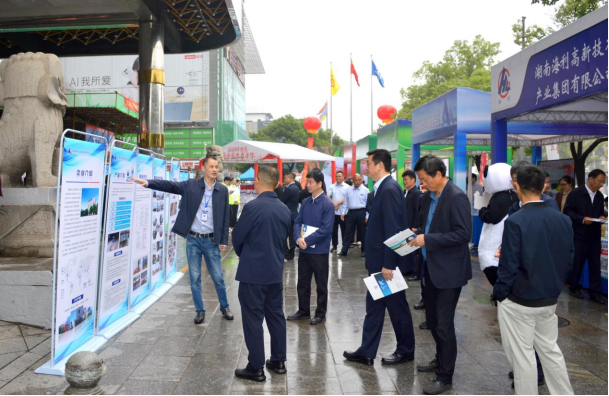 活動在斜風(fēng)細雨中如期盛大啟幕。主舞臺和湖南海利集團、湖南國儲實業(yè)公司等五家單位各具特色的展區(qū)為雨中的長沙秋色平添一抹靚麗風(fēng)景。