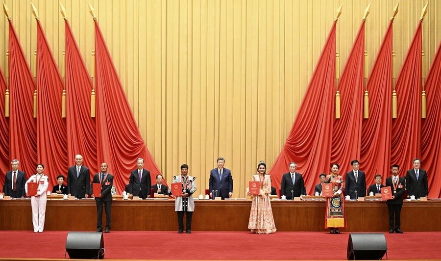 9月27日,全國(guó)民族團(tuán)結(jié)進(jìn)步表彰大會(huì)在北京舉行。習(xí)近平、李強(qiáng)、趙樂際、王滬寧、蔡奇、丁薛祥、李希等出席大會(huì)。新華社記者謝環(huán)馳攝